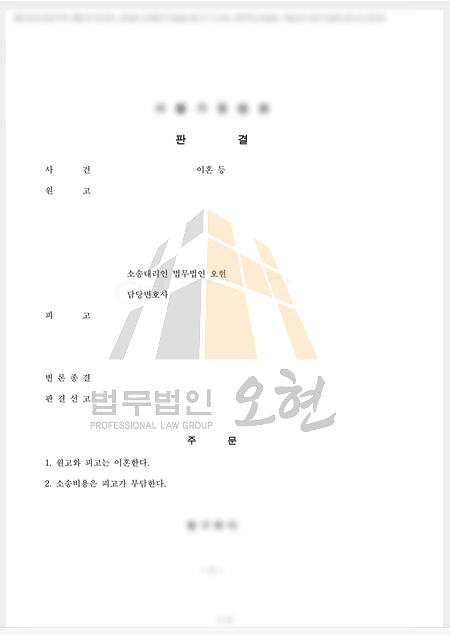 법무법인 오현의 신속한 대응 결과, 의뢰인은 사건을 의뢰한 지 불과 6개월 만에 공시송달에 의한 이혼 청구 취지대로 인용 판결을 받았습니다. 국제이혼 소송이 통상 1년 이상 소요된다는 점을 고려할 때, 의뢰인이 원했던 '빠른 이혼'이라는 목표를 완벽하게 달성한 성공적인 사례입니다.