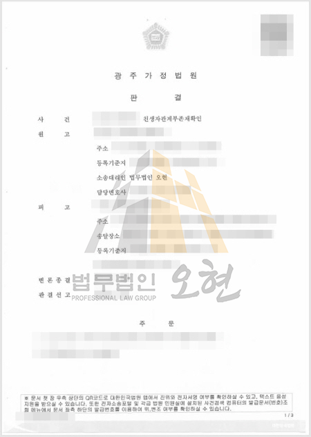 의뢰인은 이혼한 전 남편과의 혼인기간 중 출산한 자녀가 사실상 다른 남성의 아이일 수 있다는 사실을 뒤늦게 알게 되었고,법적으로는 전 남편이 해당 자녀의 친부로 등록되어 있었습니다.자녀가 성장함에 따라 친자관계를 바로잡는 것이 필요하다고 판단한 의뢰인은현재의 가족관계등록부상 부자관계를 정리하고, 친생자관계 부존재를 확인받기 위해 본 법인을 통해 소송을 제기하게 되었습니다.