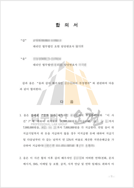 상간녀는 법적 절차 진행 가능성에 부담을 느껴 의뢰인의 요구안을 대부분 수용했고,- 위자료 지급