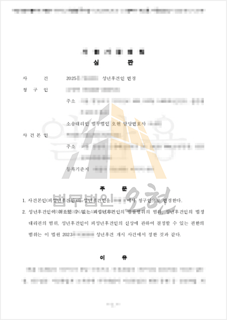 의뢰인 E씨는 고령의 부모가 치매 진단을 받아 성년후견 개시 결정이 내려진 이후,기존 후견인이 타지에 거주하여 실질적인 돌봄이 이루어지지 못하는 점을 문제 삼았습니다.이에 사건본인의 복리를 위해 인근에 거주하는 본인을 새로운 후견인으로 선임해 달라는 변경 청구를 제기했습니다.