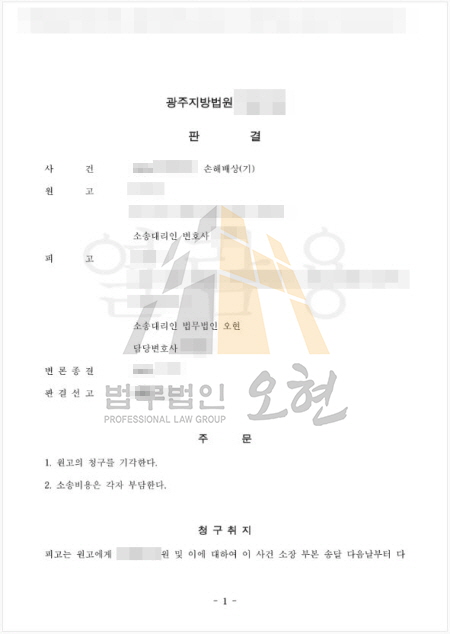 • 민법 제750조(불법행위의 내용) 고의 또는 과실로 인한 위법행위로 타인에게 손해를 가한 자는 그 손해를 배상할 책임이 있다. ※본 업무사례는 법무법인 오현의 실제 업무 사례입니다.