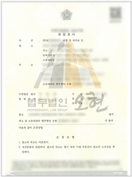 - 조정 결과, 상가 전부를 의뢰인 단독 귀속으로 결정하고, 배우자에게는 일시금 1억 원만 지급하기로 합의
