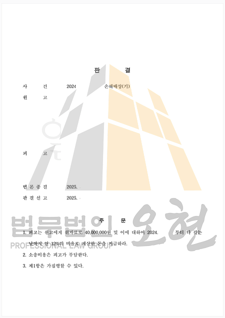 민법 제750조(불법행위의 내용) 고의 또는 과실로 인한 위법행위로 타인에게 손해를 가한 자는 그 손해를 배상할 책임이 있다. ※본 업무사례는 법무법인 오현의 실제 업무 사례입니다.