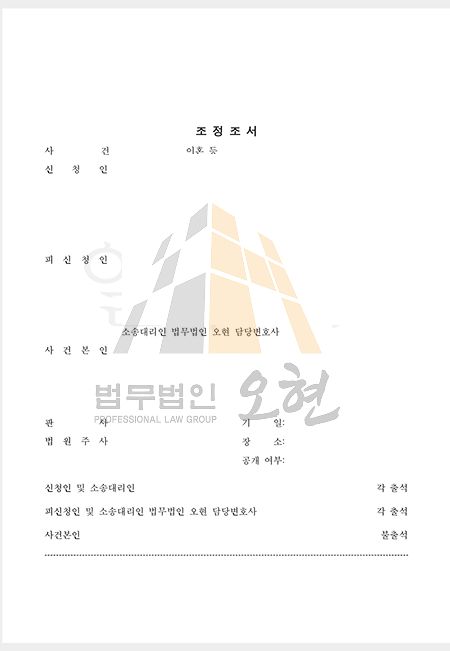 의뢰인은 소송 장기화로 인한 정신적 고통을 피하기 위해 신속한 종결을 희망하셨습니다. 그 결과, 법무법인 오현의 치밀한 변론을 통해 별도의 재판 회부 없이 첫 번째 조정기일 만에 다음과 같은 내용으로 조정이 성립되었습니다.