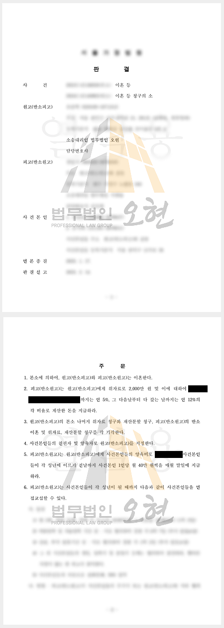 아빠가 어린 자녀의 양육권을 가져오는 것은 법리적으로 매우 정교한 준비가 필요합니다. 법무법인 오현은 단순히 상대방의 외도를 비난하는 데 그치지 않고, 사실조회신청을 통해 상대방이 자녀를 방임했다는 실질적인 근거를 제시함으로써 재판부의 신뢰를 얻었습니다. 이를 통해 의뢰인은 위자료는 물론, 무엇보다 소중했던 아이들의 친권과 양육권을 모두 확보하며 안정적인 새 출발을 할 수 있게 되었습니다.