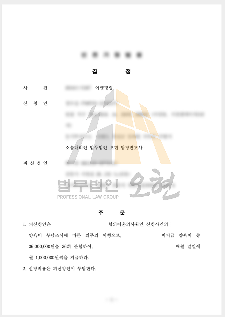 [승소] 양육비 미지급 이행명령│3,600만 원 지급 결정│이혼 후 수년간 양육비 전면 미지급│아이들 양육비 지급을 외면한 상대방에게 3,600만 원의 이행명령을 받아낸 업무사례